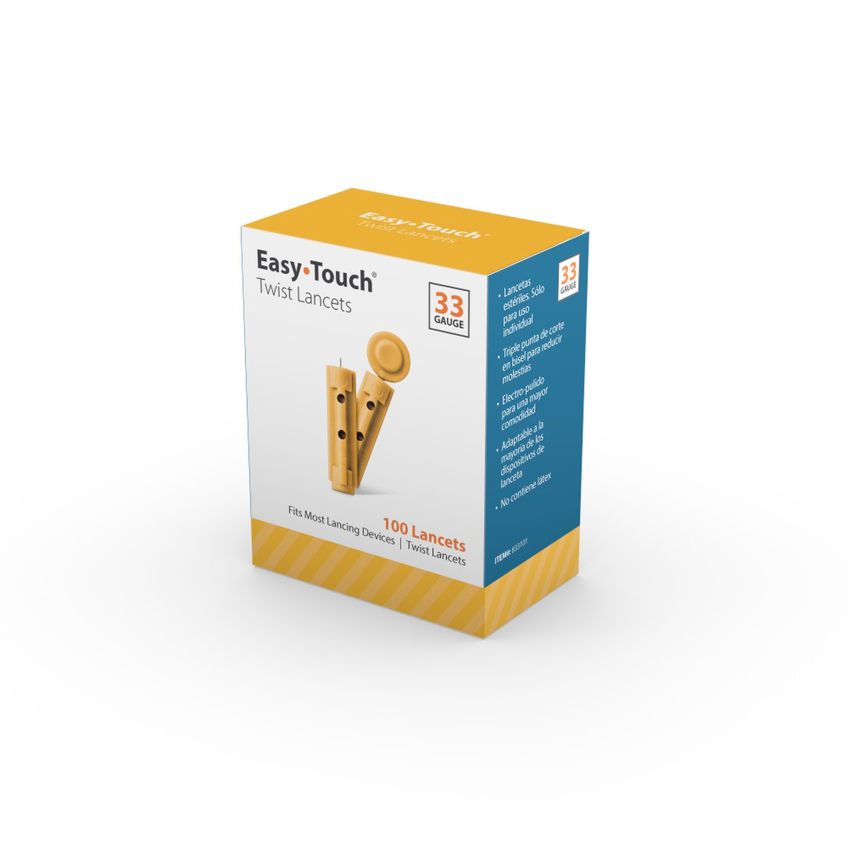 EasyTouch Twist Lancets are designed to fit the most commonly used lancing devices and have a variety of gauges to fit your level of comfort.Sterile, Single use onlyFits Most Commonly used Lancing DevicesContains no Natural Rubber LatexTripleBevel Cut for a Sharper Point