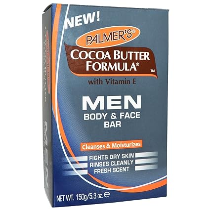 Palmer’s Cocoa Butter Formula Men Body Face Bar provides a deep clean while fighting dry skin. It thoroughly cleanses and moisturizes while rinsing off easily. It won’t leave skin feeling dry and tight like other bar soaps. It provides total skin comfort and refreshment.Palmer’s Cocoa Butter Formula Men Body Face Bar cleanses and moisturizes, fights dry skin and rinses cleanly